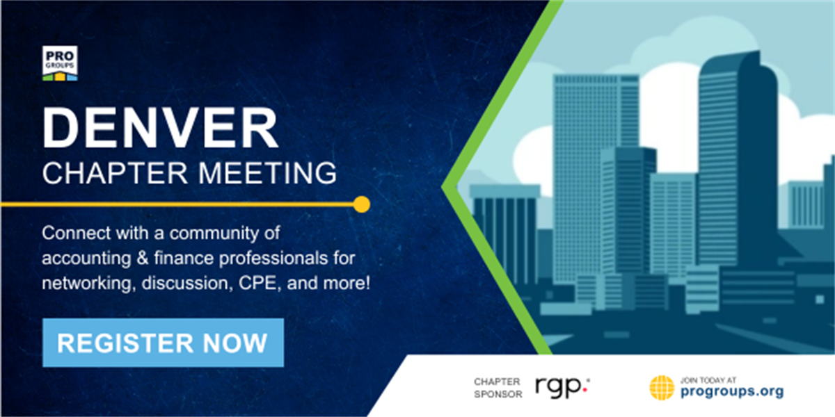 Join the Pro Groups Denver chapter for an in-person gathering of accounting & finance, sustainability reporting, and audit & risk professionals.